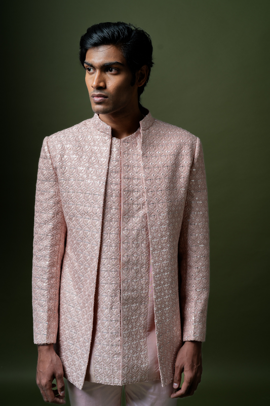 Regal Blush Pink Embroidered Jodhpuri Suit set