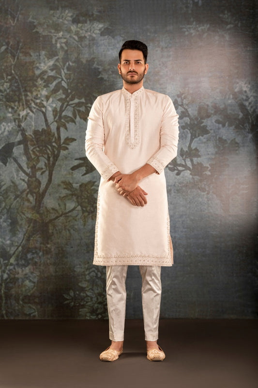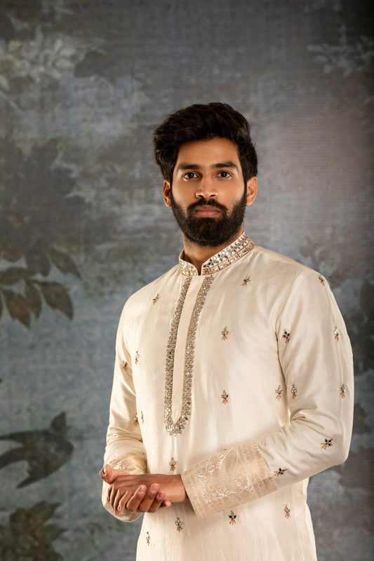 Ivory Embroidered Kurta Set for Muhurtham β Tejas Harish Hyderabad